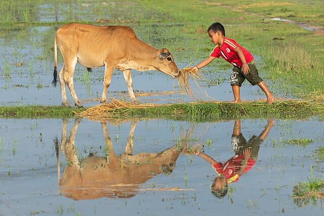 Yet for all the ease with which we connect and feel close to our pets and other animals, we all too often remain indifferent to the suffering of animals in general. As we smile at our pet’s antics or admire the qualities other animals display in videos we enjoy so much, I think it would be good to reflect on our impact on the lives of animals more broadly. Many animals suffer terribly because they are put to work for our pleasure and comfort, or are raised for slaughter to satisfy our appetite for their flesh. We are able to be tender and loving toward the pet who sits at our side and yet be causing unbearable pain to the animals whose meat sits on our plate. We find this thought distasteful, and so we mentally distance ourselves by not tracing out the chains of causality and interdependence that link our bite of meat to the distress and terror of animals crowded together in narrow cages or filthy cattle yards. Our own taste for meat is a condition that makes us complicit in a chain of causal actions that results in suffering that we would never stomach if we had to watch it. That suffering is caused by us human beings and is rooted in our failure to recognize our connectedness to those beyond our immediate field of vision.